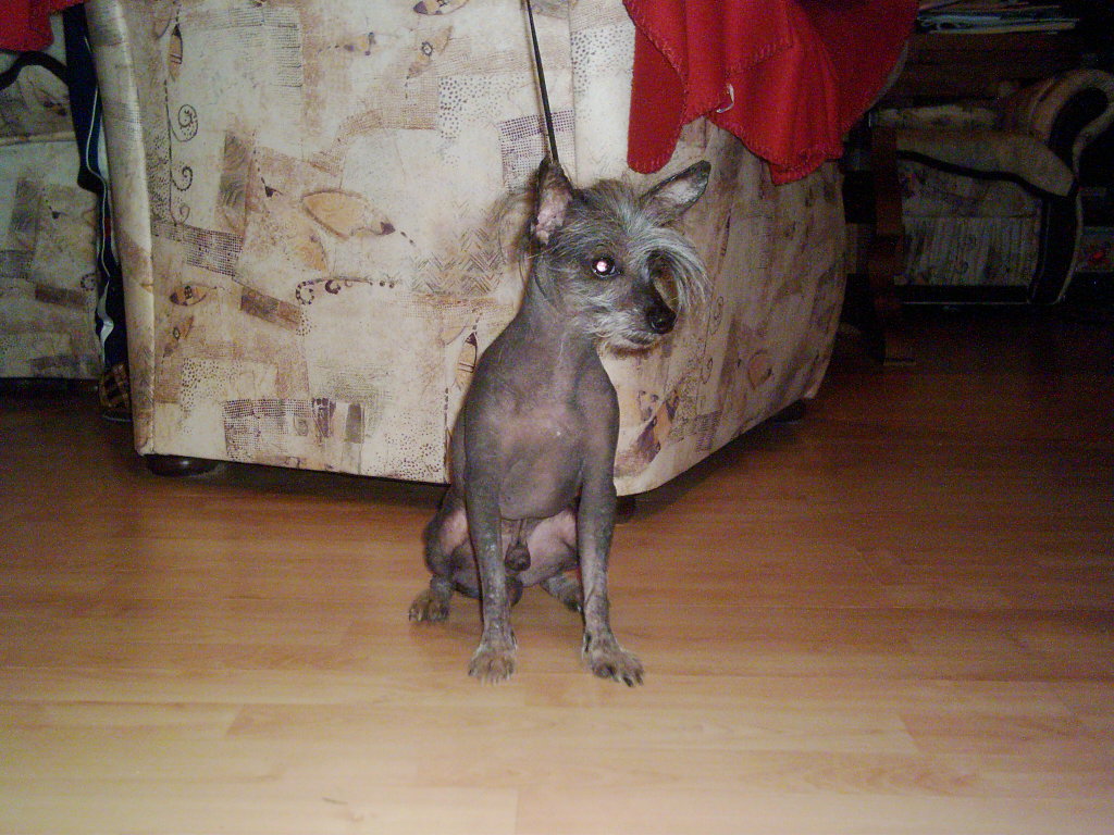 Callisto of Exotic Dog's, Haarlos, apricote-weiß, Zuchtzulassung seit 17.01.2009 in Nürnberg (D), Schere 6/6, 28 cm, PLL-frei (Brutus the Gigant von Hellmundin-Powder Puff X Jgd.Ch. A Charmed temptation of Exotic Dog's-Hairless)