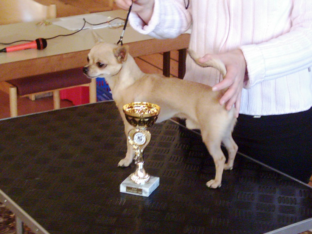 Ch. Angelboy of Svenja von Hellmundin, Powder Puff, gold-braun-weiß, Zuchtzulassung seit 15.07.2001 in Erfurt (D),(Ch. Caprioso Ok-Ho Haizi - Powder Puff X Svenja vom Wiesentäli - Powder Puff)